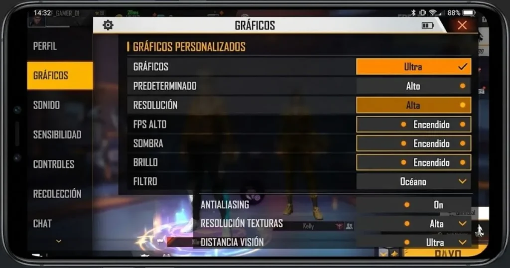 ¿Cuál es la mejor configuración de gráficos en Free Fire para celulares de 4GB RAM?